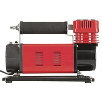Powerful air compressors great for a variety of outdoor activities and emergency situations such as pumping flat car/4x4/truck tyres, inflatable boats, air beds, etc. Both models incorporate automatic thermal cut-out for added protection as well as cleanable air filters to keep the units free from dirt and other contaminants. Includes heavy duty battery clamps for secure connection to your 12V power source and extendable coil hoses for reaching those tricky spots. Each unit has anti-vibration mounting feet to ensure they stay planted to the ground and a foam grip handle. Accessory nozzels for pumping bike tyres, balls, and other inflatables included as well as a black carry bag.