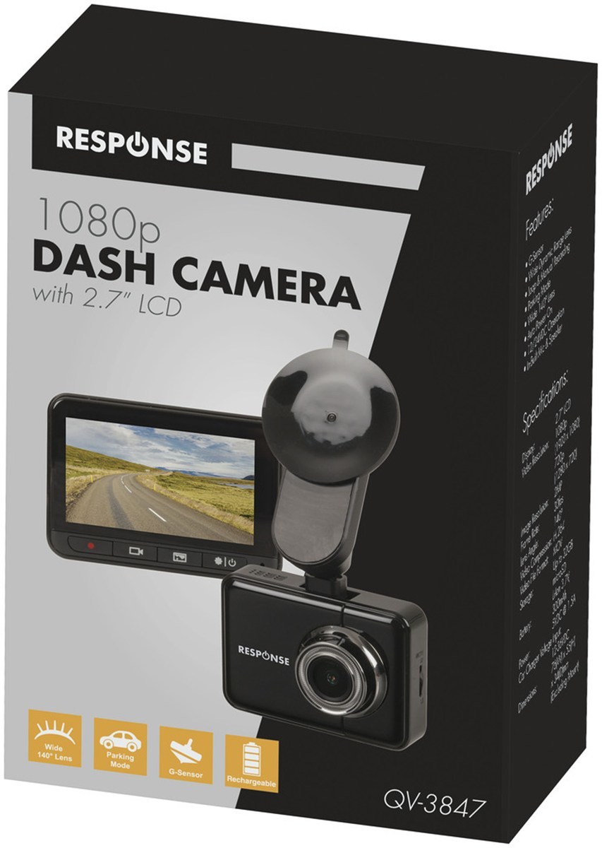Compact in size, but packed with a Full HD 1080p camera! A large 2.7” screen on the back is included for view / review functions, while a G-Sensor provides automatic recording functionality. The wide 140° lens offers great field of view, while the adjustable suction-mounting bracket gives you total control over the position. Works on 12-24VDC systems, so it’s suitable for trucks too. Audio mic / speaker included, as well as a rechargeable battery so it can provide monitoring while parked too. Includes suction cup mount, car cigarette lighter charger and USB cable.