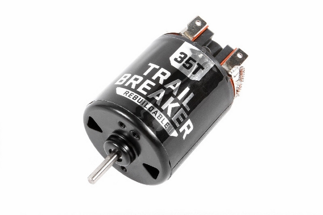 The Trail Breaker rebuildable brushed motor was designed exclusively for RC rock crawlers and high torque applications. Within the motor you’ll find sealed precision ball bearings at each end for improved efficiency and performance. Beyond that is a balanced commutator and hard brushes designed with long wear characteristics in mind, making it ideal for more run time and less down time. The 35T is a good balance between wheel speed and torque.