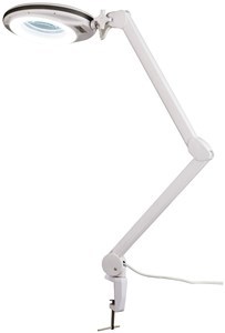 Magnify and illuminate objects for analysis. A must have tool for technicians, researchers, or for general hobby work that involves soldering, connecting wires between small parts, and other fiddly jobs where the human eye simply does not suffice. This model has a metal frame and a 5 dioptre lens allowing excellent magnification. The main extension arm can be manoeuvred in a myriad of ways to achieve perfect positioning and the lens is ringed with 90 bright white LEDs. Attachment to a desk can be achieved with the supplied clamp while a rolling base mount is available separately (QM-3549).