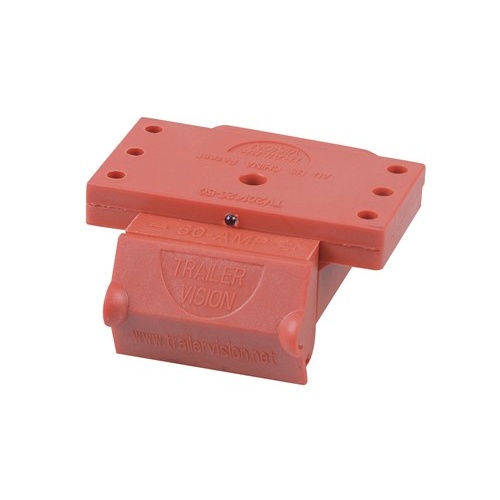 Red 50 amp cover assembly with locking device and UV insulated protection to suit Anderson and Anderson style connectors. Used for protection of power connectors in mobile environments. The intelligent design ensures a safe and reliable connection for towing, battery charging, marine and industrial OEM applications.
