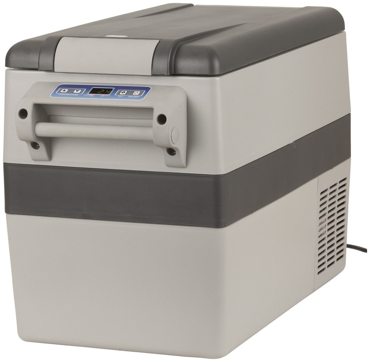 GH1632 Keeping your food and drinks cold anywhere is easy! With a powerful compressor and electronic control module, summer’s heat is no match! Adjustable temperature setting from -20 to 10°C, with a clear control panel. Suitable for mains power, and also 12 & 24V systems, so it’s great for trucks too. Automatic low-battery cutout prevents damage to your battery from over-discharge. A great unit that will give you years of faithful service.Features:- Digital temperature display with adjustable control- AC or DC power connections- Adjustable battery protection- Dual mode operation (max & economy)- Includes DC and AC power leadsSpecifications:Voltage: 12V/24VDC & 240VACFuse: 15ATotal Input Power: 50WRated Current for DC: 3.8A @ 12VDC, 1.9A @ 24VDCTemperature Setting: -20 - 10°CWeight: 15.8kg Dimensions: 690(D) x 512(H) x 332(W)mm