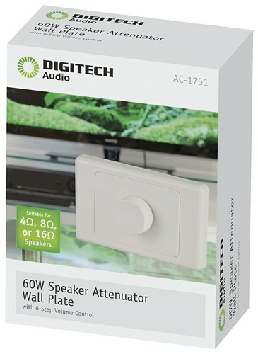 An extremely useful device for locally controlling the volume of speakers, from an amplifier located elsewhere. The connections are hidden behind a standard sized wall plate, making it perfect for ceiling or patio speakers. Also very useful in restaurants, health centres, or anywhere you may be running music to multiple areas but require localised volume. It caters for stereo (ie, left and right, or channel one and channel two) up to 60WRMS. The dial provides 6-different volume levels from Off to Full Volume, and it’s suitable for use with 4, 8, or 16? speakers. No power required.
