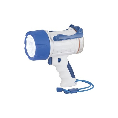 Designed for taking on the boat, fishing trips, etc. It is fully waterproof and will float if it is knocked into the water. Features a lock switch and swing out bracket for when you need hands-free operation. Includes red-LED