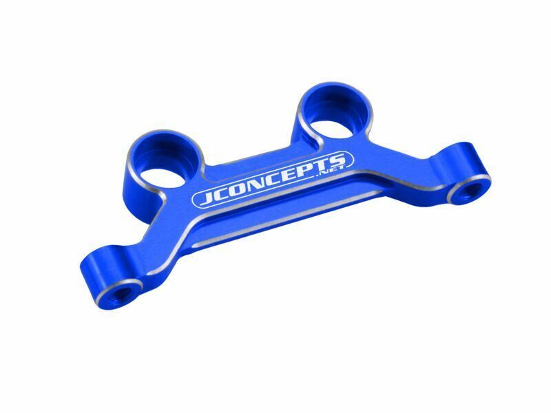 JConcepts has the steering system on the B5, B5M, T5M and SC5M covered with an all new light-weight, aluminum steering rack. The rack is CNC-machined and replaces the stock plastic piece, the steering rack by JConcepts comes in a blue or black anodized finish and sports machined chamfered silver edges and engraved JConcepts.net logo. The aluminum, light-weight assembly provides a more rigid steering system with increased steering feel and response.