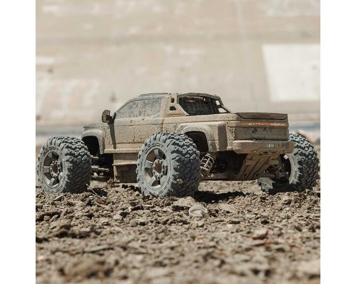 Factory assembled and installed, the heavy-duty, metal gear differentials send power from the Spektrum 3100Kv brushless motor to all four wheels for worry-free bashing on dirt, gravel, or short grass. The entire power system is well-protected and the all-terrain independent suspension and oil-filled shocks soak up bumps. Set up ramps or build some dirt mounds and launch your truck into the air! Extended height side guards on the strong composite chassis combine with the close-fitting body to keep dirt and debris out of the chassis tub. When maintenance is needed, the hidden clipless body retention system allows quick, easy chassis access.