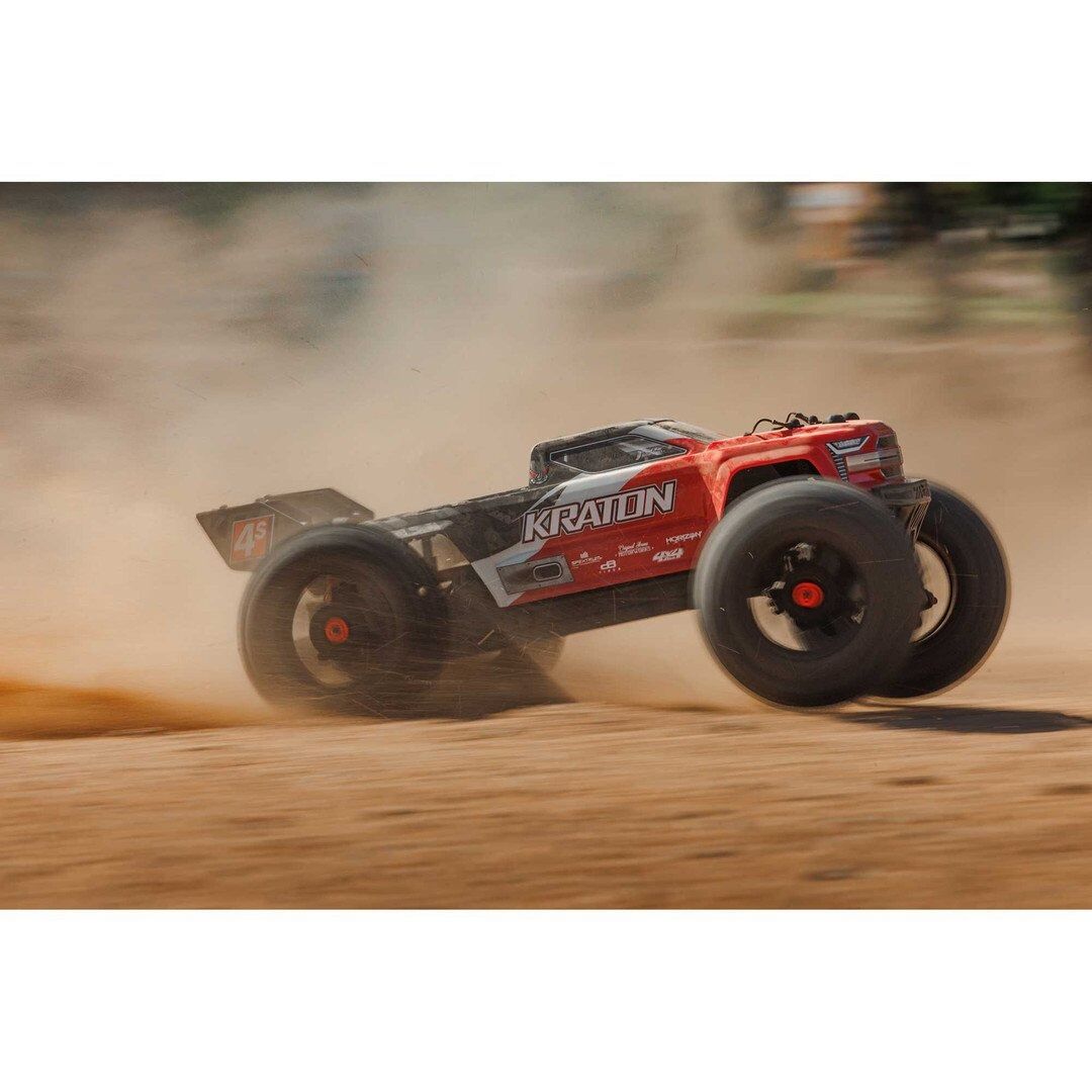 The KRATON 4S BLX RTR offers ARRMA speed and strength in the ideal size for any monster truck basher — with a center diff for the ultimate grip, an updated Spektrum brushless system for more punch, added dirt protection, and two fresh color choices.