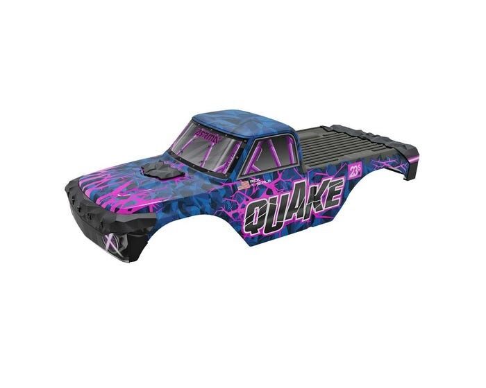 This Arrma Painted Body Set, Purple is compatible with the Quake 223S (ARA3537).