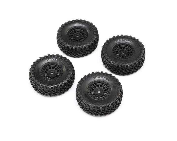 Officially licensed high traction Falken M/T mounted 1.0-sized Black Rhino Primm wheels for Axial SCX24 RC vehicles. This aggressive mud terrain tire is perfect for rock crawling, off-roading or overlanding. Set of four.