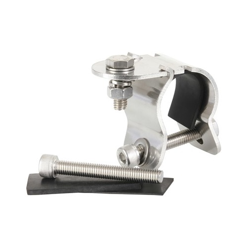 These brackets are designed to mount driving lights, spotlights, UHF antenna's and other various applications to a tube frame (such as a bull-bar). Allows for much easier attachment to bull-bars, trailer railing, ute roll-bars or even a roof rack. Stainless steel construction with shockproof rubber insulation so your tube frame isn't scratched or dented.