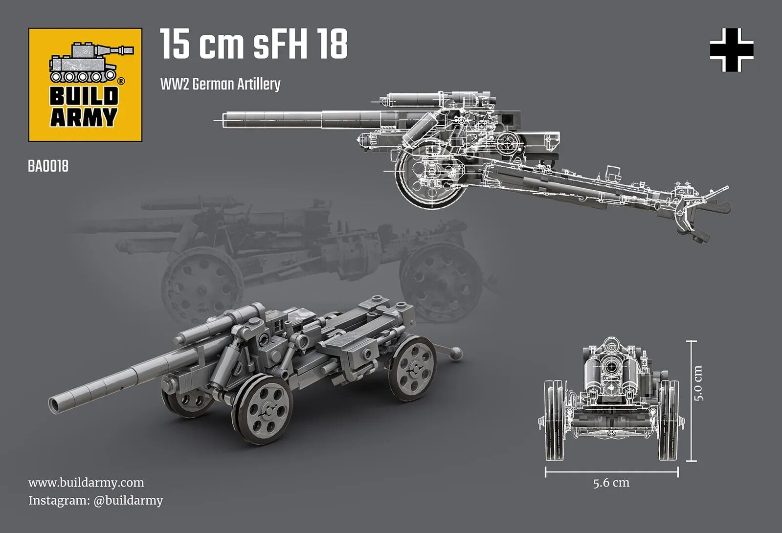 The 15 cm schwere Feldhaubitze 18 or sFH 18 (German: “heavy field howitzer, model 18″), nicknamed Immergrün (“Evergreen”),  was the basic German division-level heavy howitzer during the Second World War. It was capable of firing 150 mm shells at a range of up to 12.8 kilometers. The sFH required a crew of twelve men in order to operate efficiently and could fire off rounds at a rate of four rounds per minute. About 5,000 sFHs were produced by the end of the war in 1945.