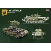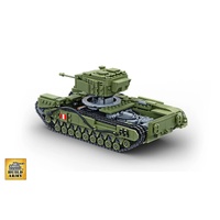 Elevate your collection with our Churchill tank model kit, the largest and most detailed WWII Allied tank in our lineup. This 1305-piece set delivers an authentic 1:33 scale replica of the iconic Churchill tank, known for its distinctive heavy armour and exceptional versatility during the war. With its larger size and complex track design, this model is tailored for advanced builders. It captures authentic exterior details and features a fully realized interior structure within the hull. Explore intricate elements like the driver’s seat, turret basket, and engine compartment, providing a realistic building experience and added depth for enthusiasts of military history and model construction.