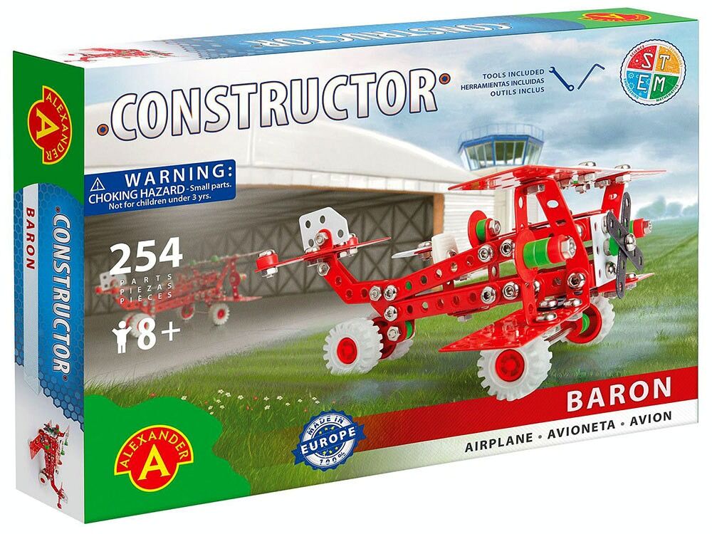 CONSTRUCTOR is a series of toy models to assemble on your own. This 254 piece 'Baron' retro biplane consists of metal pieces of different shapes and sizes with complementary plastic parts visually enhancing its design. Includes tools with which to asssemble the kit.