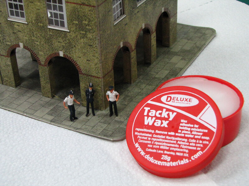 Wax adhesive for holding miniatures in place whilst allowing re-positioning.