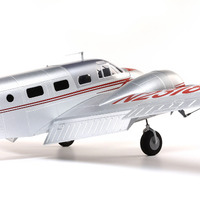The E-flite® Beechcraft D18 1.5m is the best, most convenient, and easiest-to-fly scale model of one of general aviation's most unique and recognizable aircraft! Its twin brushless power system with specially tuned motors delivers an abundance of thrust when using a 3S LiPo battery. For more speed and vertical performance, just install a 4S pack. No modifications or upgrades are needed! It's also equipped with an exclusive 40-amp Spektrum™ Avian™ Dual Smart ESC that can provide a variety of real-time power system telemetry data with Smart and non-Smart batteries via compatible receivers (including the AR631 installed in the BNF® Basic version) and Spektrum AirWare™ equipped transmitters. The BNF® Basic version is also the only Twin Beech model equipped with AS3X® and optional-use SAFE® Select technologies to make this the easiest to fly D18 yet! Factory-finished in a classic trim scheme, the lightweight yet durable, composite-reinforced and fully-molded EPO airframe features an abundance of scale detail — molded-in panel lines and hatches, antennas, exhaust stacks, a clear cockpit, and more. Included functional flaps, twin rudders, and LED navigation lights take your experience to another level. Factory-installed electric retracts with durable metal components allow you to fly from a wide variety of surfaces including paved runways, packed dirt, and even grass. The unique 3-piece wing design makes transport and storage as convenient as possible because the center section includes the main gear and all of the sections feature innovative hands-free connections. And because no glue is required for final assembly, you can have the Beechcraft D18 1.5m ready to fly in less time than it takes to charge a battery!