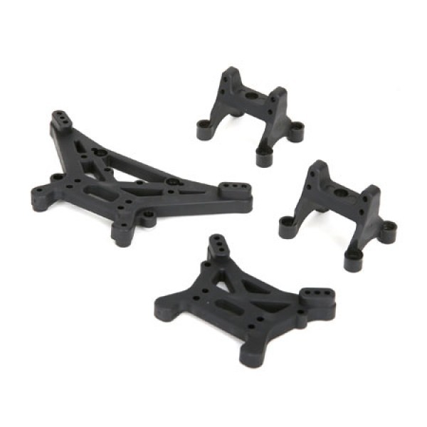 This front and rear shock tower set is designed for the ECX Circuit, Ruckus and Torment 4WD RC trucks.