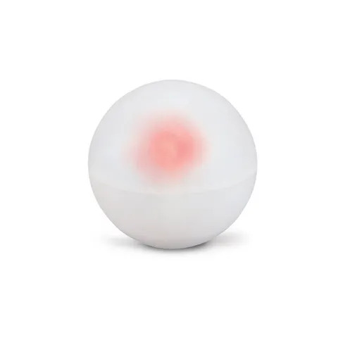 • Size and Color: The opaque white energy ball glows red when fingers complete circuits with its contacts. At 1 ½ inches in diameter, it’s about the size of a golf ball.