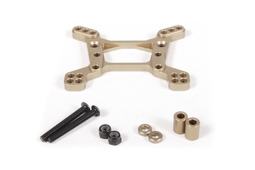 AxialÆs CNC machined front shock tower! Upgrade your stock plastic shock tower to this CNC machined tower for rigidity and strength! Shock tower includes multiple mounting holes for upper shock mounts and upper A-arm links for added adjustability.