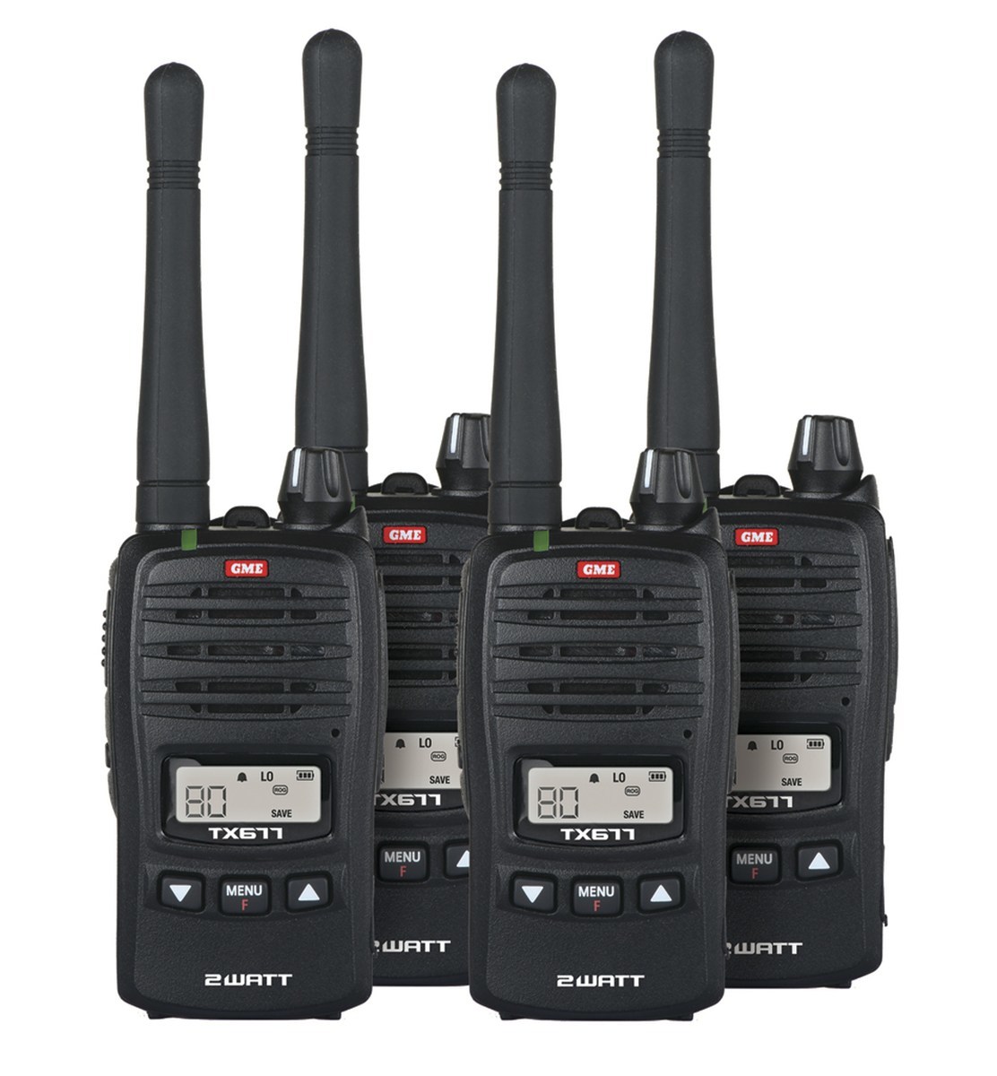 The TX677 2 watt UHF CB two way radio is both compact and lightweight, featuring a flexible detachable antenna, rotary power/volume control and a USB multi-charging system for charging on the go. It offers 14 hours operating time using low output power, and up to 10 hours using high output power (based on 5% transmitting, 5% receiving and 90% waiting mode).
