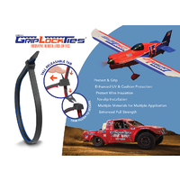 Rubber-Lined, Releasable GripLockTies™ were invented and patented initially for Air Racing and Automotive environments to solve the problems or ordinary zip ties that are either too tight and break or too loose and move around.GripLockTies™ Releasable, Rubber Lined Zip Ties solve the problems of damaged wires and cuts into structure and paint. Everyone in aviation knows (or should know) not to put ordinary zip ties on Engine Mounts. Old-style ties will loosen when the pressure deforms the wire and cut the wires or worse, cut through the paint and structure and cause damage. But with Rubber-Lined GripLockTies™ the rubber lining pads the wires and structure and holds it stable under vibration and eliminates the damage of old slip ties saving time, weight and money over Adel style or metal Clamps.GripLockTies were developed for aviation and racing with UV protection, higher heat rating and a super strong positive latch and can be repositioned during construction and then clipped flush. Available in standard UV Protected Black Dupont Nylon with Red or Blue or Orange Rubber-Lining.
