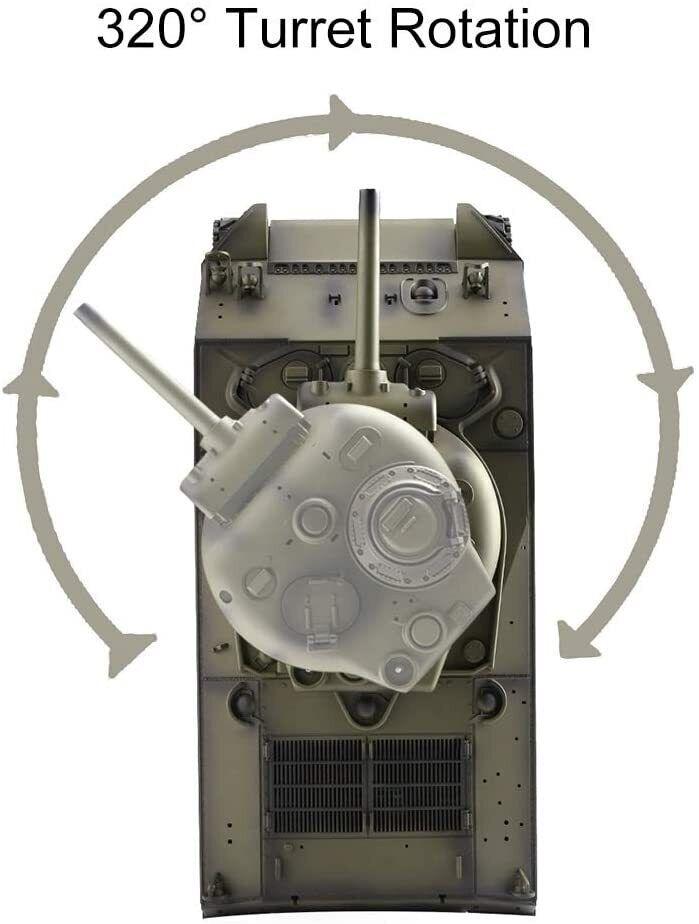 • Realistic suspension system, mimicking the original tank, absorbs shocks for a smooth ride over rough terrain