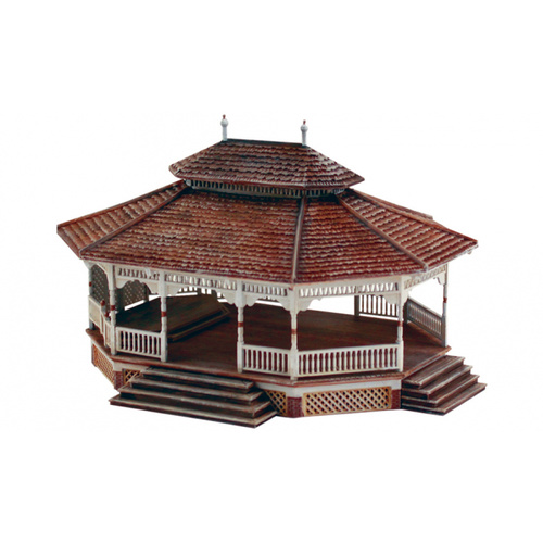 Public Pavilion makes a stunning statement as the centerpiece of a city or village park and makes the prefect gathering place for layout residents. Highly detailed and easy to assemble, the Public Pavilion also includes a Warm White LED Stick-On Light with 30 AWG wire 24" in length, compatible with the Just Plug™ Lighting System.