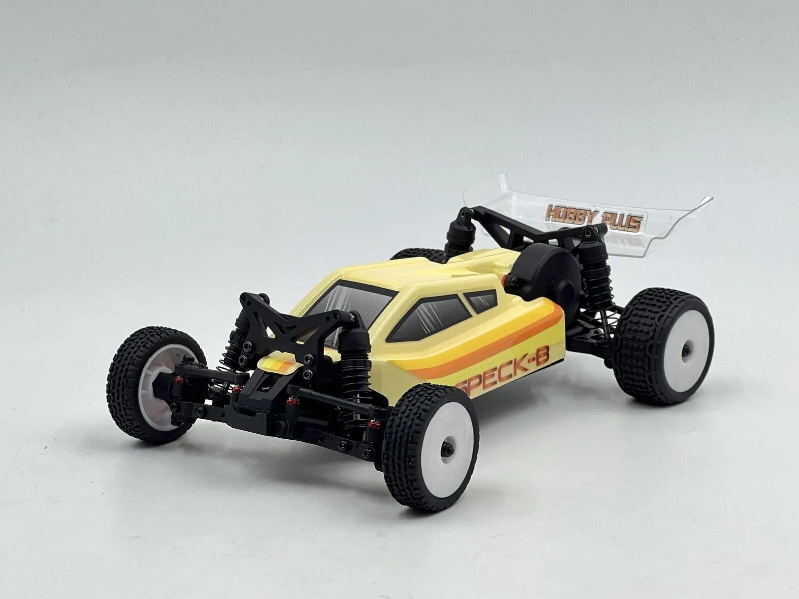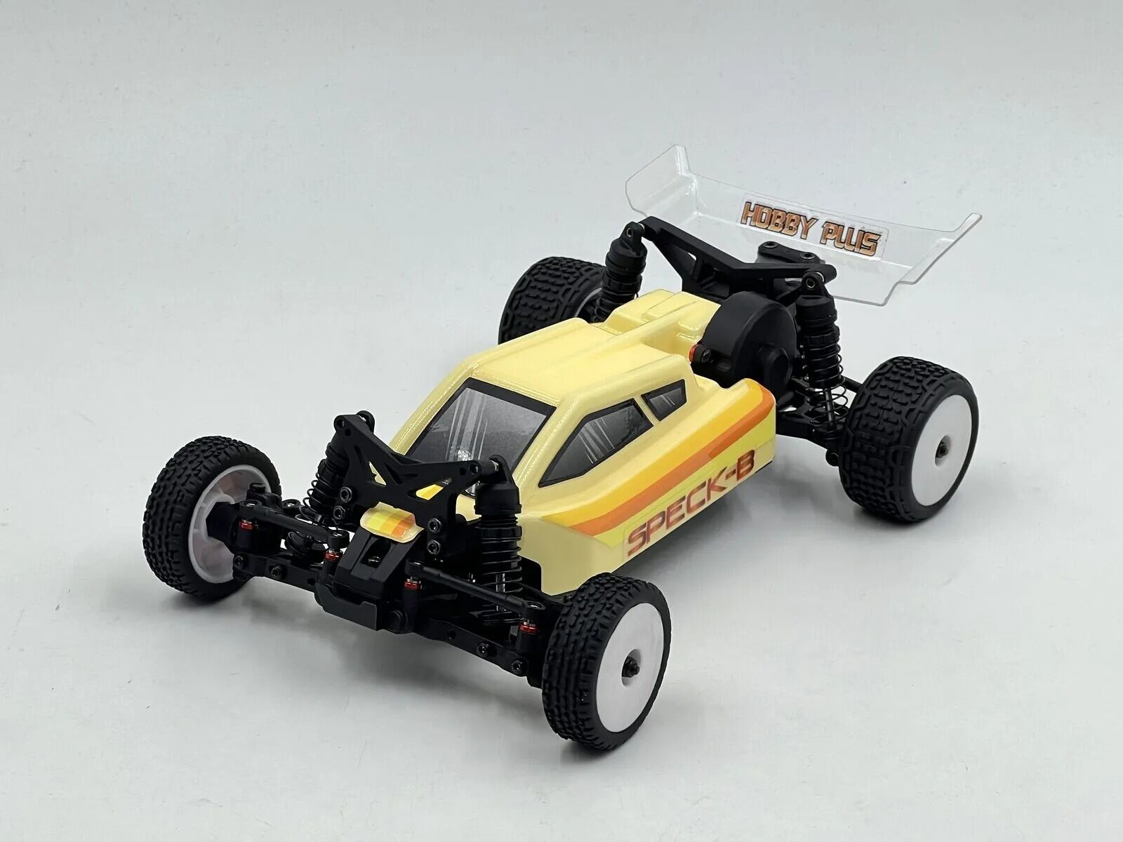 Compact and versatile 1:24 scale Speck-B buggy from Hobby Plus. Durable, adjustable, and ready-to-run with hybrid metal and plastic gearbox, oil-filled shocks, and brushless upgrade capability. Vintage Cream body for a classic look.
