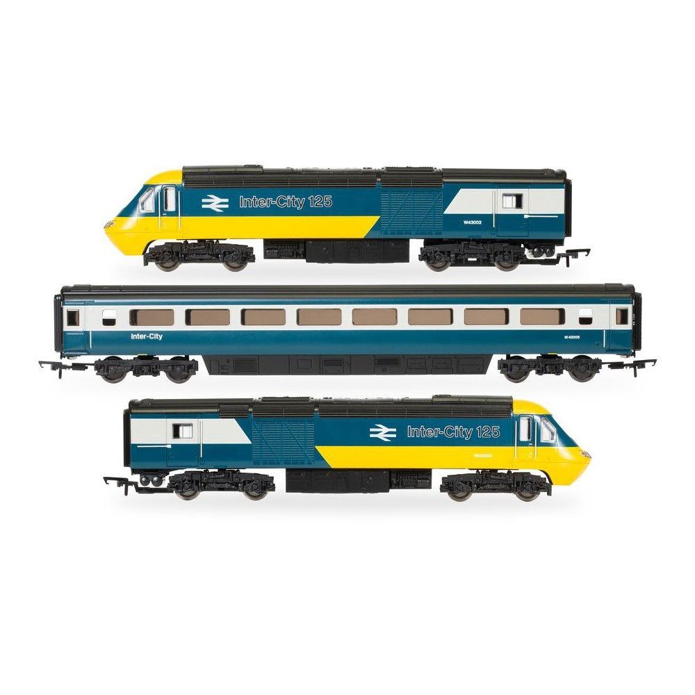 This train set comes complete with a pair of Class 43 diesel driving cars; one powered and the other a non-powered driving car. The power car has head lights that illuminate.