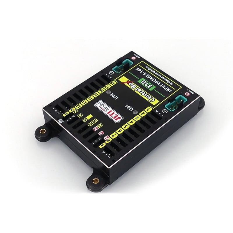 The Central Box is a switchboard designed for the complete management of servos in a model with an emphasis on safety. The Central Box 310 offers maximal unreduced power for each servo (servo outputs do not have overload protection).