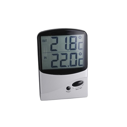 One display that shows both the inside and outside temperatures simultaneously. It will also record the minimum and maximum temperatures. The outside temperature sensor is waterproof and is on a 3 metre cable. It also has a tilting bail for standing as well as a keyhole for wall mounting. Jumbo digits for the optically challenged.