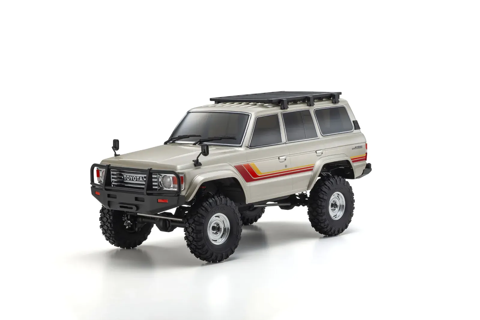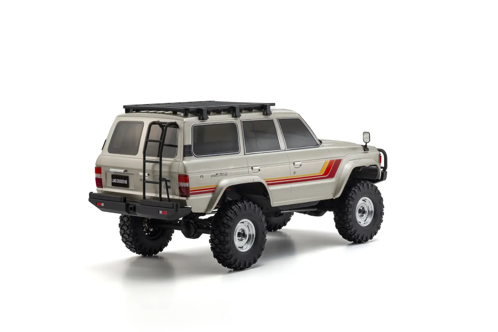 Kyosho’s 1/10 scale Toyota Land Cruiser 60 captures the legendary look of the original with impressive realism. Molded from durable polycarbonate, the body includes separately molded parts like the roof rack and rear ladder for added scale detail. It’s a true-to-life R/C experience that brings the spirit of the classic Land Cruiser to every adventure.