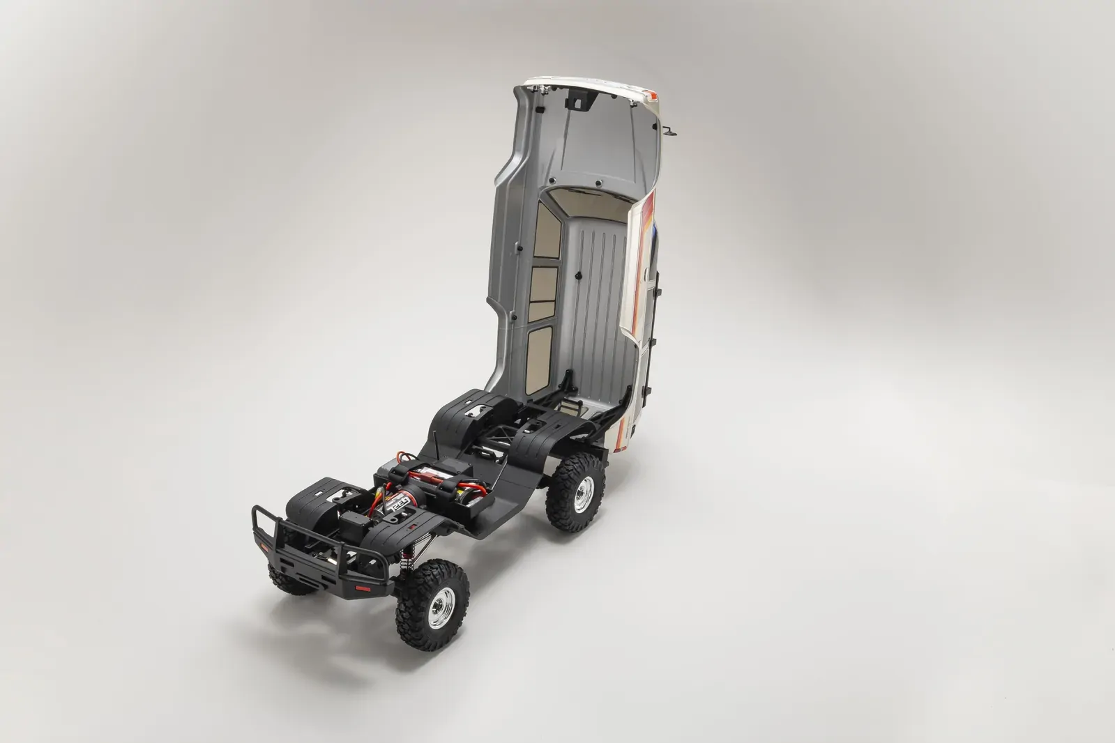 To maintain its ultra-realistic appearance, the model uses a clipless body mounting system that eliminates visible body pins for a cleaner, scale finish. A quick-release front latch allows easy access to the chassis for battery changes etc. without needing to remove the entire body.