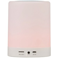 Beautiful and very functional. It features a rechargeable battery so you can put it just about anywhere, and either tether to a Bluetooth audio source or playback from the microSD card; there’s even a 3.5mm aux input! It recharges via USB (cable supplied) to provide up to 5hrs of playback, and provides beautiful LED illumination while being used. Easy to use, with great sound.