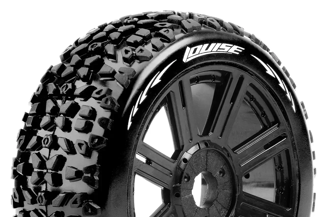 Louise RC - B-MAZINGER - 1-8 Buggy Tire Set - Mounted - Soft - Black Spoke Wheels - Hex 17mm - L-T31
