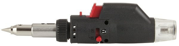 A handy gas soldering iron with flame or flameless heat blower function. Great for general heating, drying, melting, cutting, soldering, heat shrinking etc. It also features adjustment for temperature control, Piezo ignition, retractable stand, visible gas tank and child resistant latch. The tip has a sturdy cap for when not in use. Carry case includes 1mm tip, 3mm chisel tip, 5mm angle tip, hot knife tip, 1mm solder hobby pack, cleaning sponge and tray.