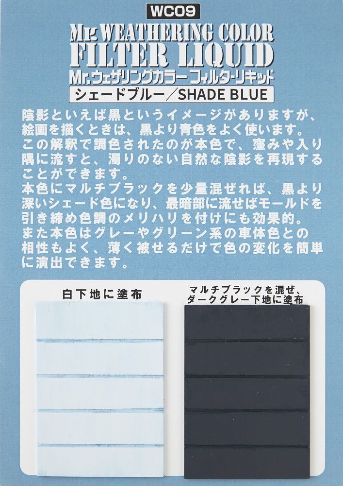 The Filter Liquid series is a category of Mr. Weathering Colors specifically designed for filtering. By applying this paint over a base color, you can add subtle changes to the tone, enhancing the overall finish of your model.