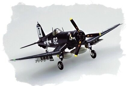 One of the classic aircraft of the World War II period, the Corsair was designed in 1938 to meet a USN requirement for a shipboard fighter. The distinctive inverted gull-wing was to provide sufficient ground clearance for the huge propellor attached to the Double Wasp engine. The XF4U-1 was first flown on May 29 1940. On October 1st, 1940, the aircraft became the first to exceed 400mph - achieving 404mph (646kmh). The aircraft entered service in mid-1942, and development continued through to 1952.