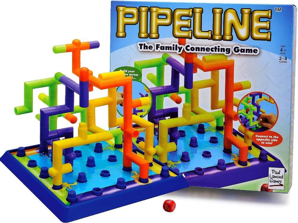 In this fantastic family connecting game, players race to build their pipeline from their starting tap to the opposite side of the board. Four players have colourful plastic sets of plumbing, straights, angles, T joints and blockers. The first player to connect to any of the four connectors on the finishing pipe wins. For 2 to 4 players and suitable for ages 4 and up.