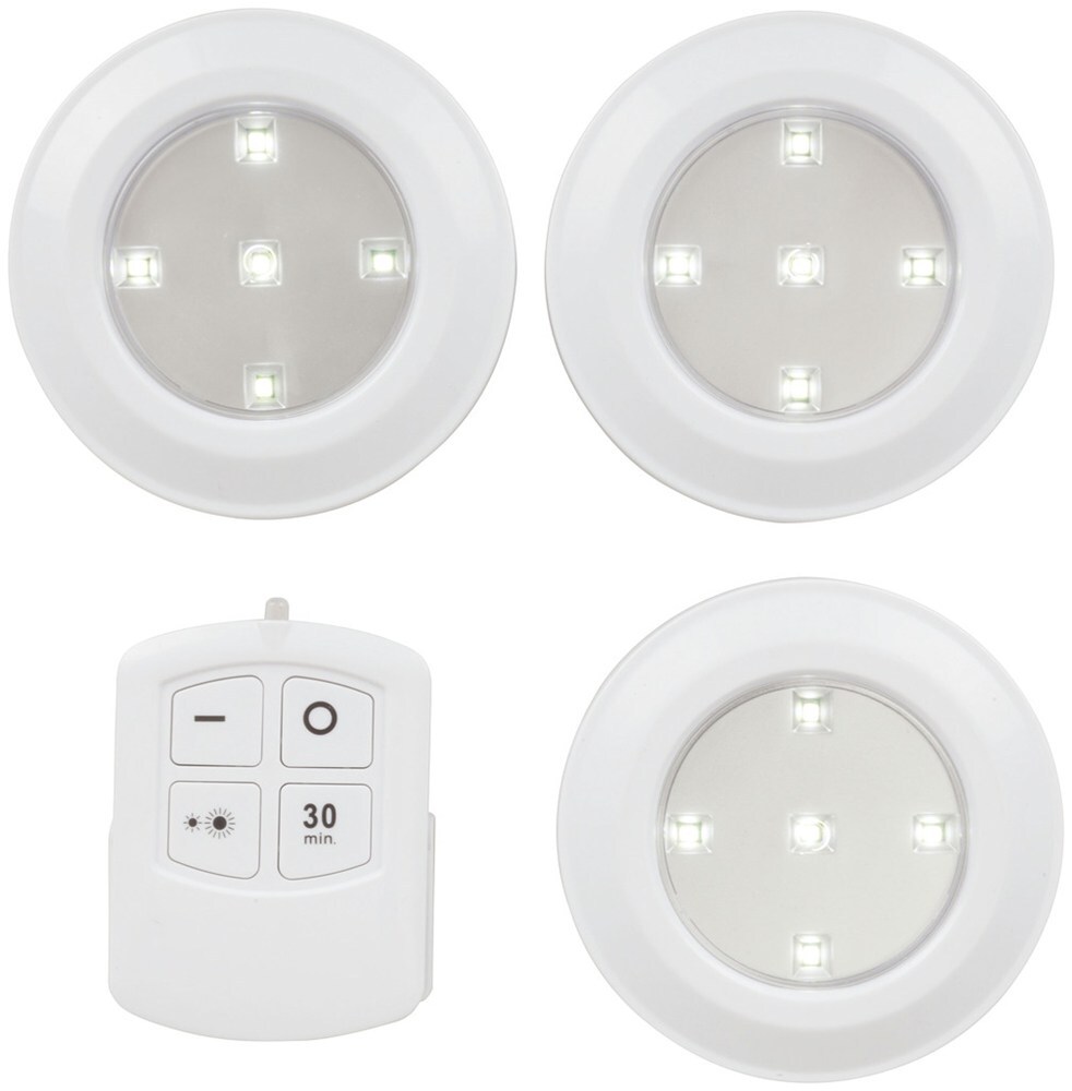 This amazing kit of three LED puck lights takes the hassle out of adding lighting to, well - just about anywhere! Each puck light contains not one, two, or three, but 5 ultra bright LEDs. There’s no pesky wiring to get them to work though - just install three of your favourite AA batteries in to each light and put them in a location that’s begging to end the darkness. The included adhesive tabs also mean no screws are required! But these aren’t your average puck lights, there’s a central remote control to control them all! The remote control then caters for centralised on and off functionality, as well as a “low brightness” dim setting, or set them to turn off in 30-minutes automatically. Not near the remote? Simply press a puck light and it will turn on for you too. Amazing!
