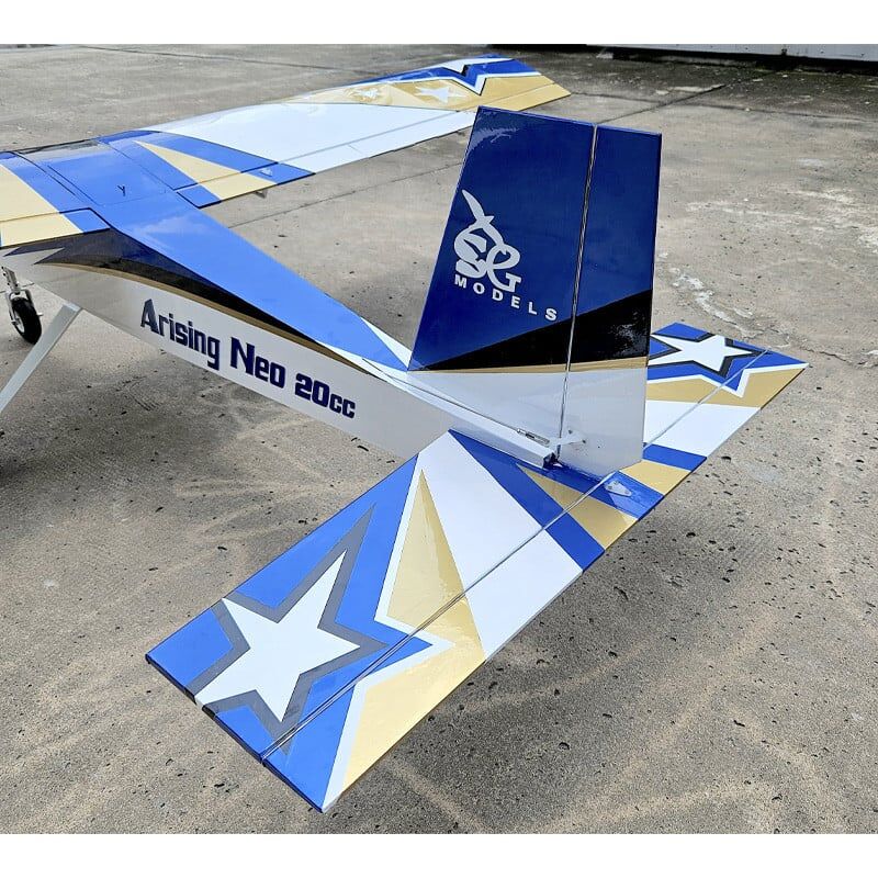 The Arising Neo bridges the gap between a pure entry-level trainer and an advanced sport plane — stable enough for newcomers, yet versatile enough to grow with the pilot. A perfect blend of performance, stability, and simplicity, this 74" high-wing trainer offers a truly relaxing and rewarding flying experience. Optimized for 20cc gas engines, this ARF (Almost Ready to Fly) model combines modern convenience with cost-effective operation. Its lightweight balsa and plywood construction delivers a strong yet agile airframe, factory-covered in vivid heat-shrink film that ensures both visibility and style in the air. With its generous wing area and semi-symmetrical airfoil, the Arising Neo provides smooth, self-correcting flight characteristics that make it ideal for learning, slow approaches, and relaxed cruising.