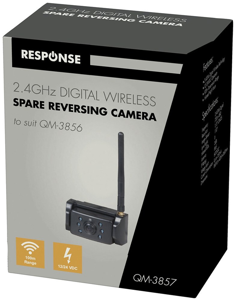 Spare 2.4GHz digital camera to suit QM-3856 long range reversing camera kit. You can pair up to two cameras on the monitor with this additional camera being placed on your car or 4WD and one on your caravan or trailer to have a dual camera display or be viewed individually. The camera features infrared night vision, adjustable angle and waterproof housing to ensure it will cope in the harshest weather conditions.