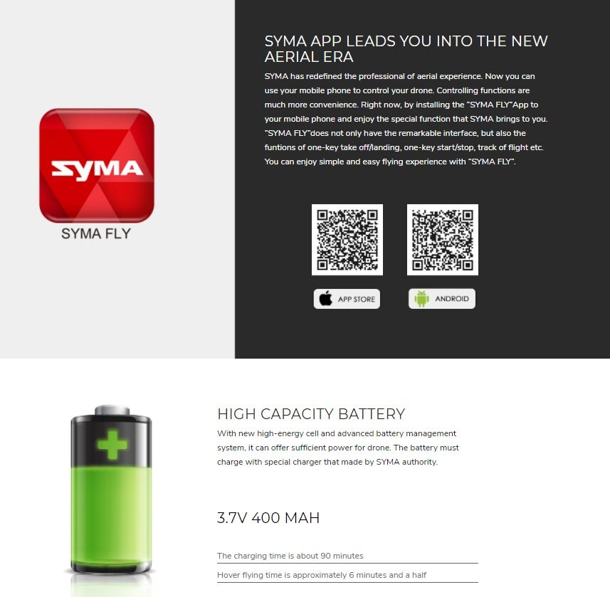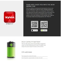 Using the SYMA authority's specially designed charger for the battery is essential. The drone offers a quick 90-minute charging time, minimizing downtime and maximizing your time in the air.