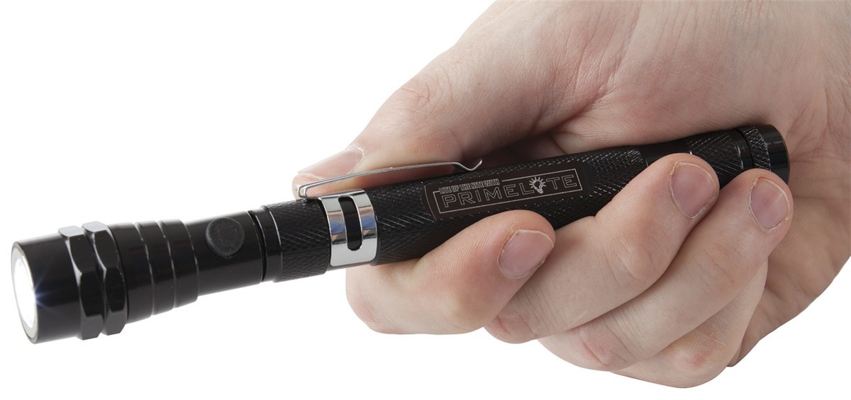 A pen-sized torch with super bright LEDs and magnetic head for picking up objects. The torch head is attached to a telescopic mast hidden away inside the casing. Fully extended the torch has a total length of 546mm allowing your search into cracks and crevices. A gooseneck at the end allows you to shine light around corners and pick up metallic objects out of reach.
