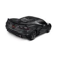 The name is synonymous with American sportscar excellence: Corvette. Traxxas delivers the spirit and excitement of the all-new mid-engine Corvette in exacting detail, for a replica that performs as realistically as it looks. The faceted, jet-fighter body and its massive side intakes are duplicated to the millimeter. The simulated LT2 V8 is visible beneath the rear hatch. Authentic black-chrome wheels fill the fenders. Beautiful to displaywith Traxxas performance that demands you to drive.