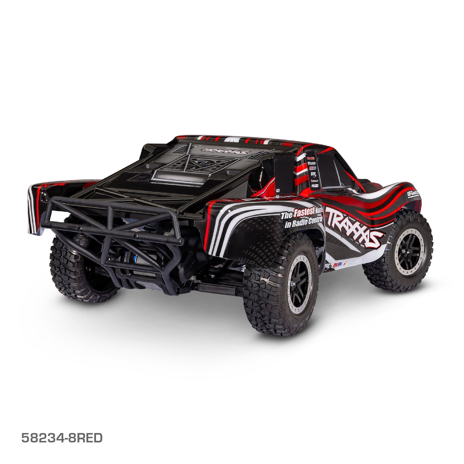 Traxxas Slash® puts you in the drivers seat for intense fender-to-fender short course racing action at the track, or in your own backyard. The rear-wheel drive Slash is purpose built to fly over jumps and rip full-throttle through the turns. New Extreme Heavy Duty Upgrade parts allow Slash to take brutal punishment in stride. Slash's fully adjustable track-ready suspension delivers most authentic short course racing experience possible.