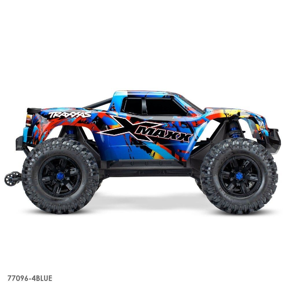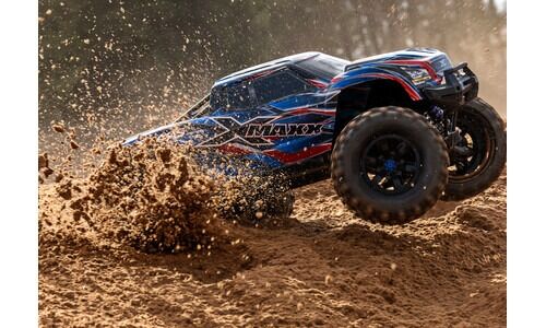 Unrelenting 4X4 power, mammoth size, and award-winning innovation make X-Maxx the ultimate monster truck. With 30+ volts of extreme 8s power, X-Maxx defies physics, unleashing jaw-dropping acceleration and 50+ mph speed. Belted Sledgehammer® tires conquer the most extreme terrain while providing unrivaled high-speed stability. Built to take brutal punishment in stride, X-Maxx is the definition of Traxxas Tough.