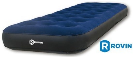 Don’t let sticks and stones hurt your bones when out camping. Put a lovely cushion of air between you and the ground. This twin inflatable bed is made from durable PVC to last many trips, and a flocked top for comfort (which also helps stop any bedding slipping around). Equipped with non-return valves for no-fuss setup, it can be inflated with a standard air pump sold separately. Includes a small repair kit!