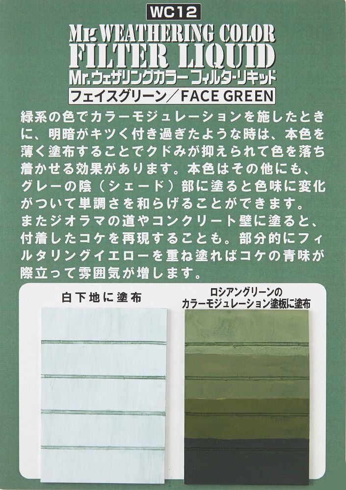 he Filter Liquid series is a category of Mr. Weathering Colors specifically designed for filtering. By applying this paint over a base color, you can add subtle changes to the tone, enhancing the overall finish of your model.