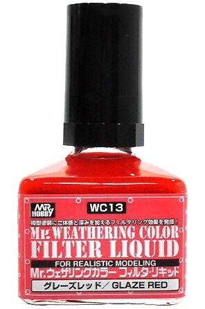 A painting technique where a layer of a different color is applied over the base coat to create the effect of a color filter, subtly altering the tone of the painted surface.* Please use the special Mr. Weathering Color Thinner for dilution and cleaning of tools.