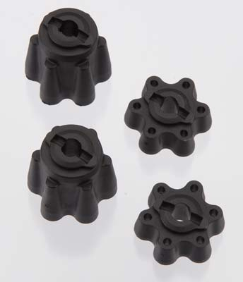 FEATURES: Hardened plastic construction Cross pin hubs eliminate the need for a 12mm drive hex Compatible with the Axial licensed Trail Ready wheels, and most Vanquish wheels Realistic 6-bolt design
